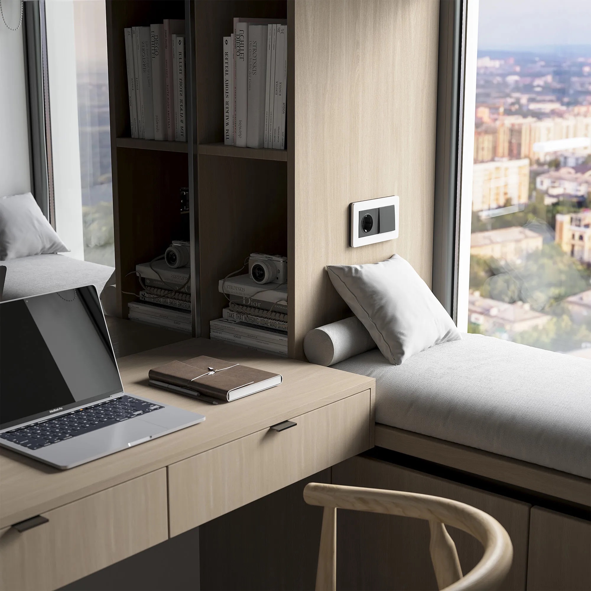 💡 Совет: Выберите механизмы в цвете «Дымчатый матовый» — новый оттенок от Werkel, вдохновлённый палитрой Old Money, идеально дополняет серо-бежевые тона лофта .